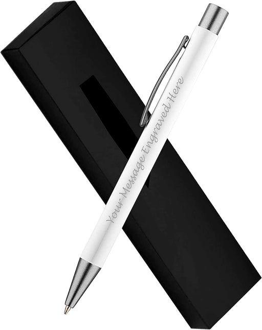 Personalised White Ballpoint Pen with Rubber Design and Silver Trim in Gift Box or Velvet Pouch