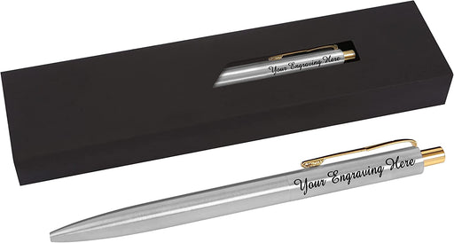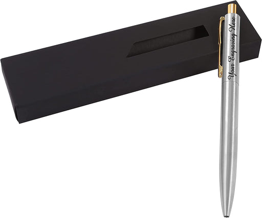 Personalised Silver Stainless Steel Ballpoint Pen with Gold Trim and Gift Box or Velvet Pouch