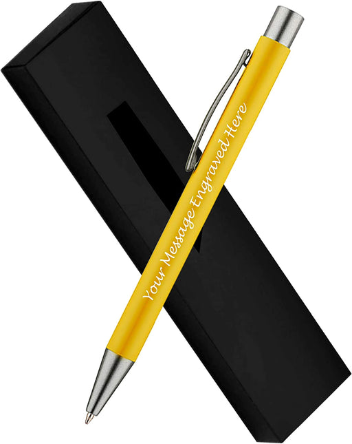 Personalised Yellow Ballpoint Pen with Rubber Design and Silver Trim in Gift Box or Velvet Pouch