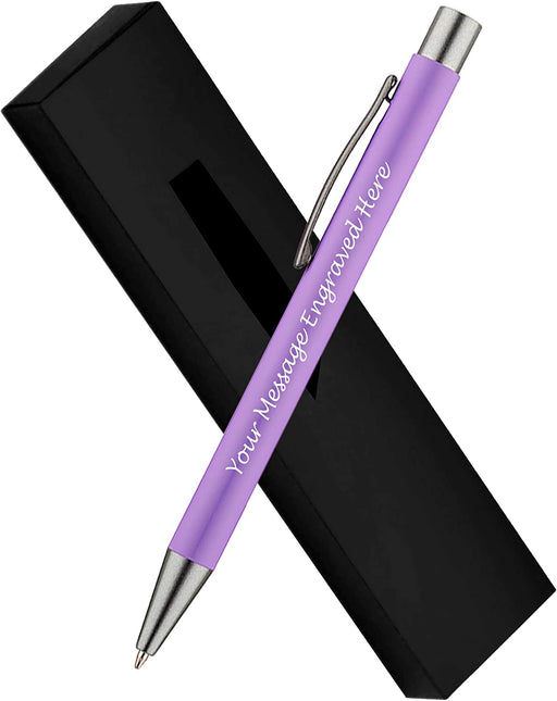 Personalised Purple Ballpoint Pen with Rubber Design and Silver Trim in Gift Box or Velvet Pouch