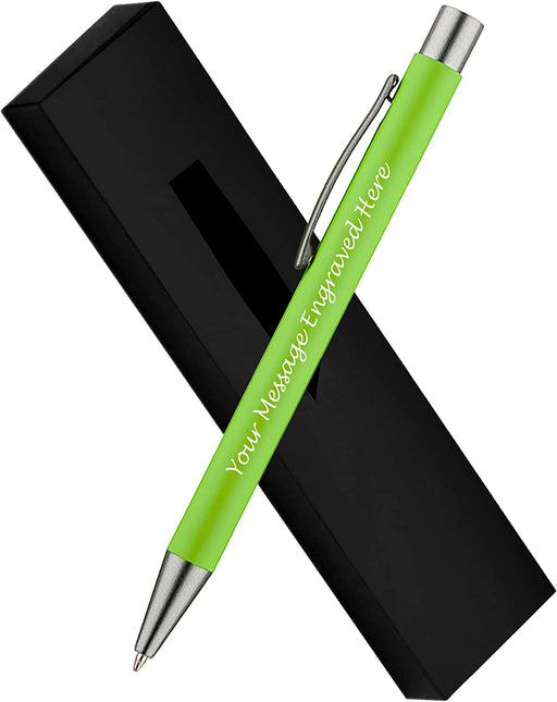Personalised Lime Green Ballpoint Pen with Rubber Design and Silver Trim in Gift Box or Velvet Pouch