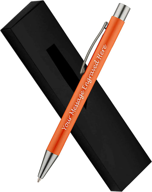 Personalised Orange Ballpoint Pen with Rubber Design and Silver Trim in Gift Box or Velvet Pouch