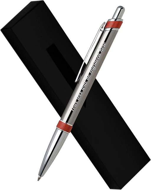 Personalised Silver Ballpen with Red Textured Design and Presentation Box or Velvet Pouch Options