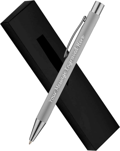 Personalised Light Grey Ballpoint Pen with Rubber Design and Silver Trim in Gift Box or Velvet Pouch