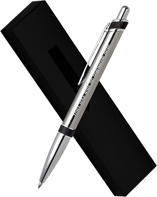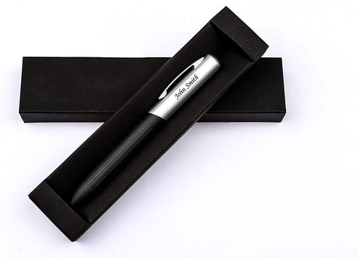 Personalised Silver Ballpen with Black Textured Design and Presentation Box or Velvet Pouch Options