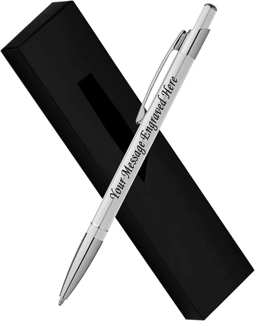 Personalised Engraved White Slim Ballpoint Pen with Silver Trim in Chrome Case or Gift Box