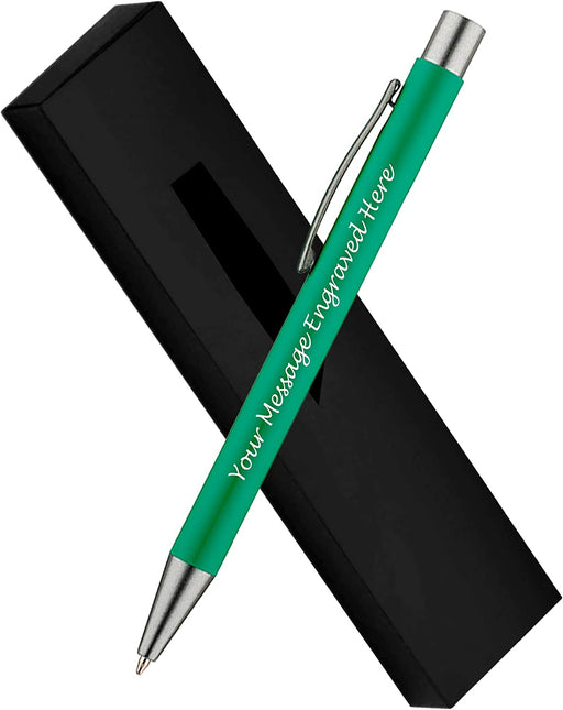 Personalised Green Ballpoint Pen with Rubber Design and Silver Trim in Gift Box or Velvet Pouch