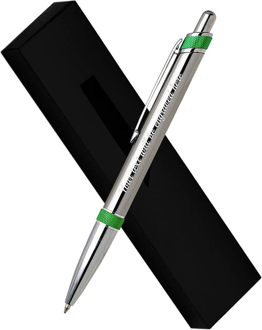 Personalised Silver Ballpen with Green Textured Design and Presentation Box or Velvet Pouch Options