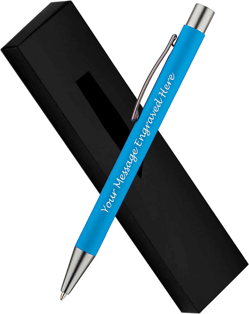 Personalised Light Blue Ballpoint Pen with Rubber Design and Silver Trim in Gift Box or Velvet Pouch