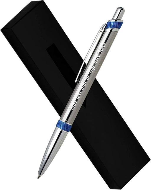 Personalised Silver Ballpen with Blue Textured Design and Presentation Box or Velvet Pouch Options