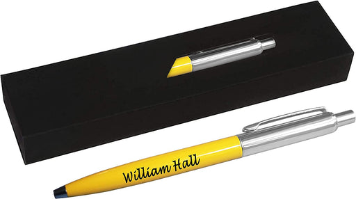 Personalised Engraved Yellow Slim Ballpoint Pen with Silver Trim in Chrome Case or Gift Box