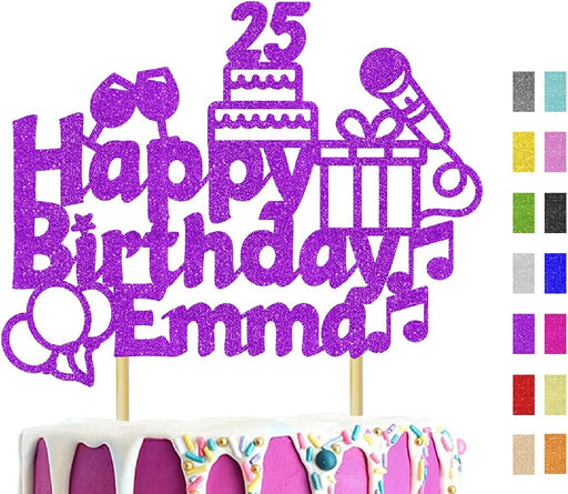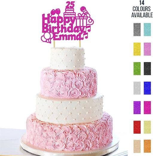 Personalised "Happy Birthday" Glitter Cake Topper in Multiple Colours