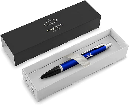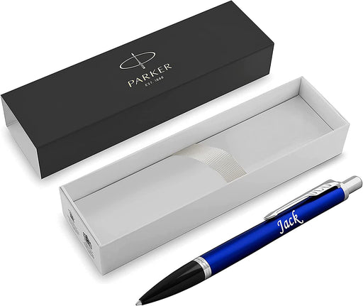 Personalised Engraved Parker Metallic Blue Urban Ballpoint Pen with SIlver Trim in Parker Gift Box