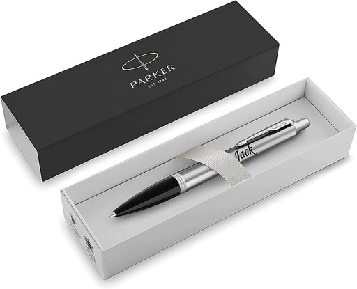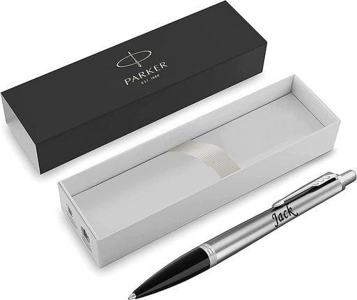 Personalised Engraved Parker Urban Silver Ballpoint Pen with Silver and Black Trim in Parker Gift Box