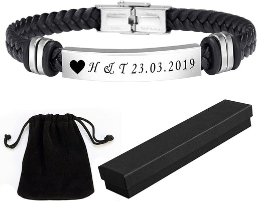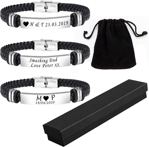 Personalised Leather Bracelet with Gift Box and Velvet Pouch