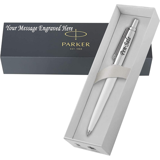 Personalised Engraved Parker Jotter White Ballpoint Pen in Engraved Parker Gift Box