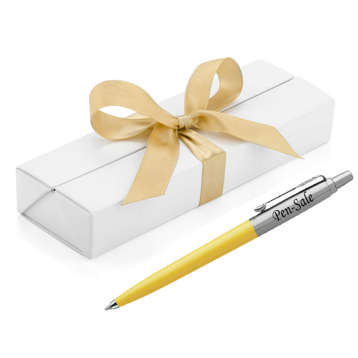 Personalised Engraved Parker Jotter Yellow Ballpoint Pen in Ribbon Presentation Box