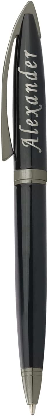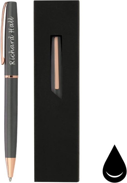 Paul Clover Personalised Engraved Glossy Grey Ballpoint Pen with Black Trim and Presentation Box