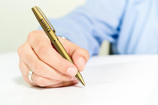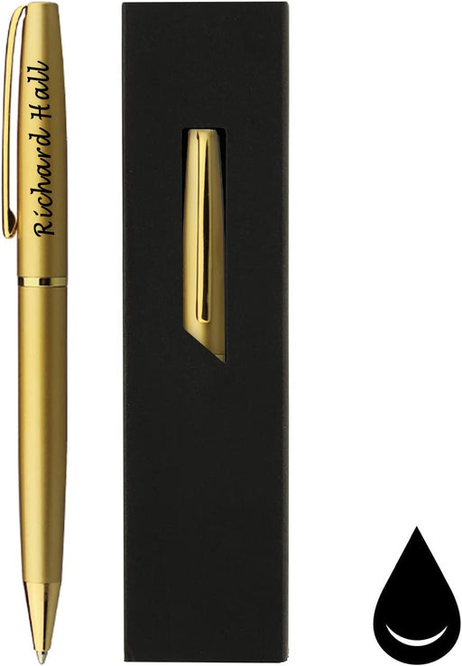 Paul Clover Personalised Engraved Glossy Gold Ballpoint Pen with Gold Trim and Presentation Box