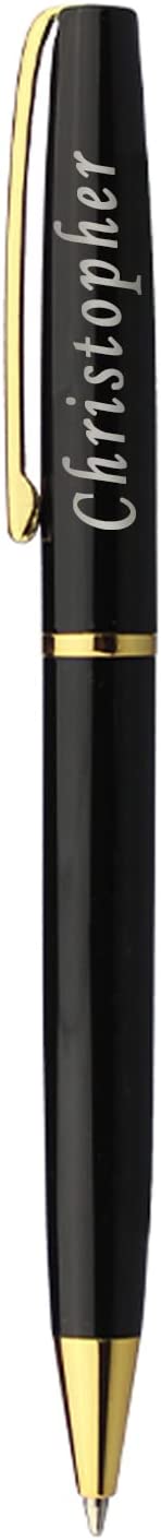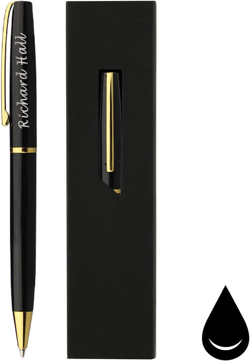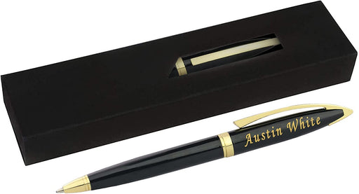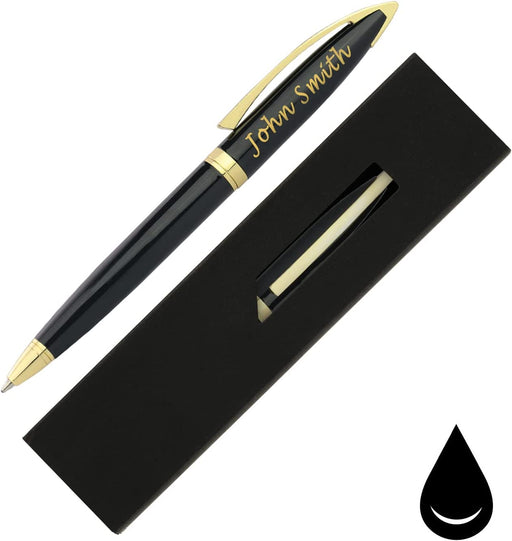 Paul Clover Personalised Engraved Glossy Black Ballpoint Pen with Gold Trim and Presentation Box