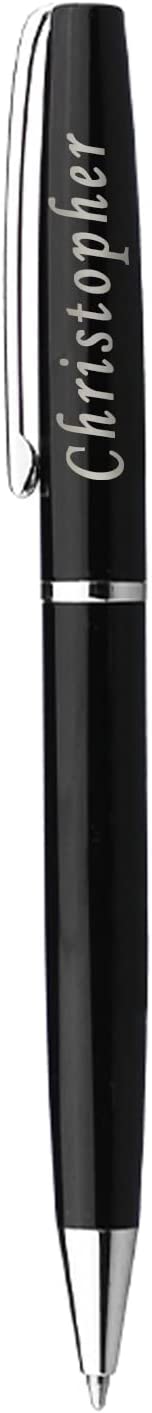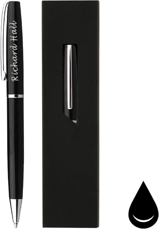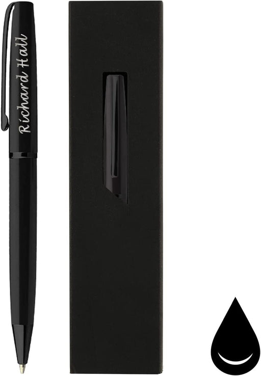 Paul Clover Personalised Engraved Glossy Black Ballpoint Pen with Black Trim and Presentation Box