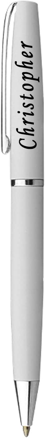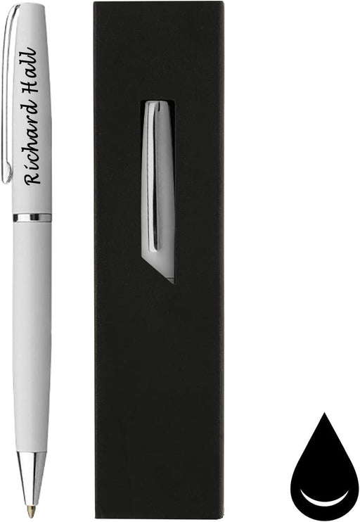 Paul Clover Personalised Engraved Glossy White Ballpoint Pen with Silver Trim and Presentation Box