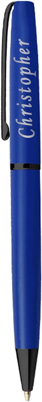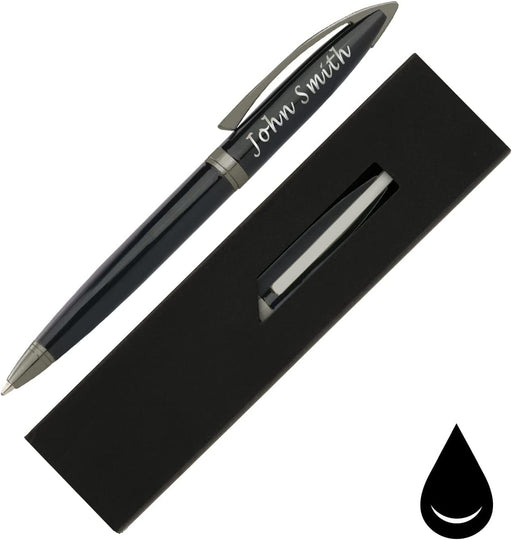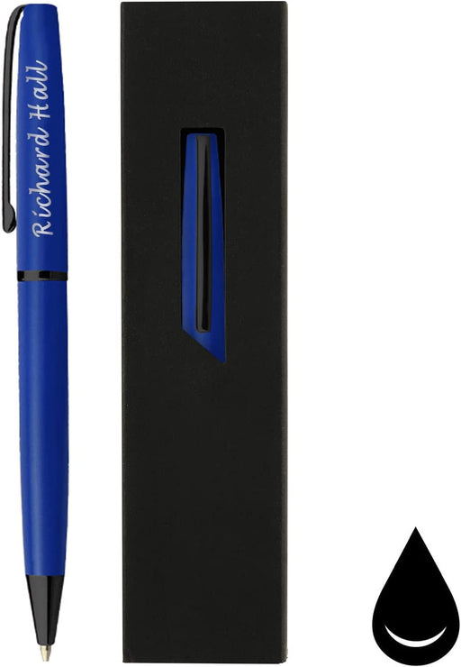 Paul Clover Personalised Engraved Glossy Blue Ballpoint Pen with Black Trim and Presentation Box