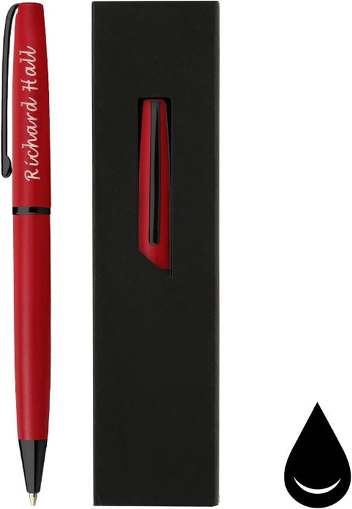 Paul Clover Personalised Engraved Glossy Red Ballpoint Pen with Black Trim and Presentation Box