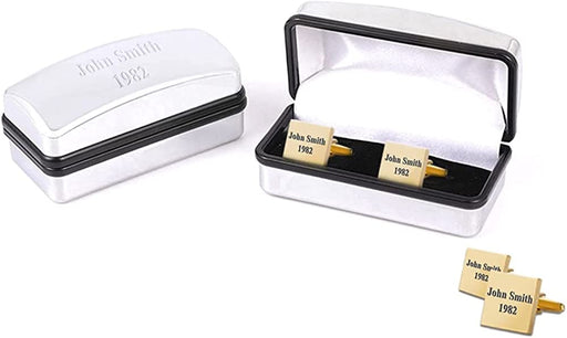 Personalised Large Gold-Plated Rectangle Cufflinks in Chrome Gift Case and Velvet Pouch