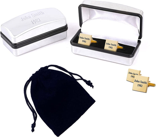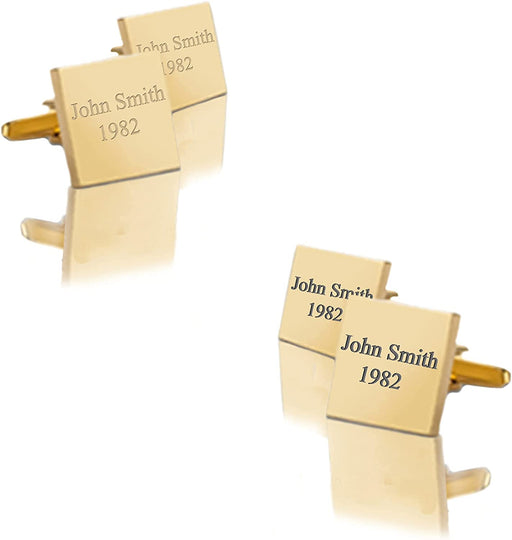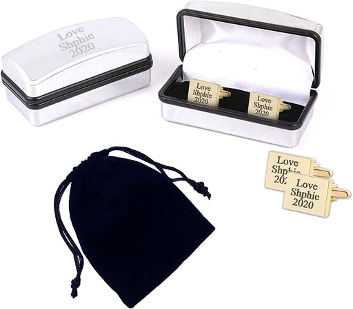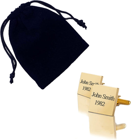 Personalised Stainless Steel Gold-Plated Square Cufflinks with Velvet Pouch