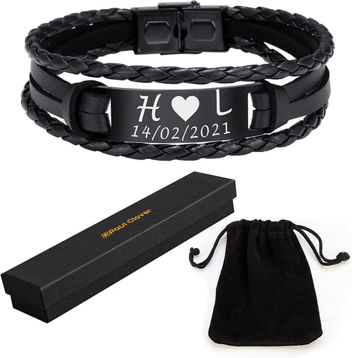 Personalised Leather Bracelet with Gift Box and Velvet Pouch