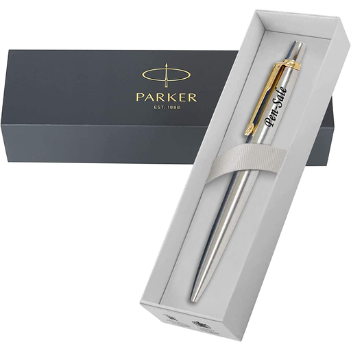 Personalised Engraved Parker Jotter Stainless Steel Gold Trim Ballpoint Pen in Engraved Parker Gift Box