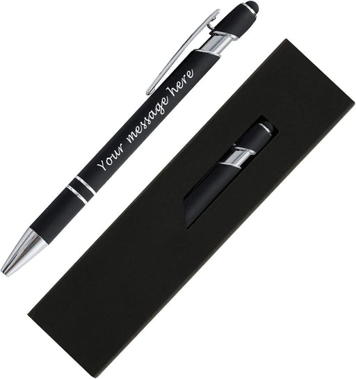 Paul Clover Personalised Engraved Soft Touch Ballpoint Pen and Stylus in Presentation Box