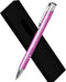This luxury metal pen features a slick pink gloss barrel with a contrasting silver trim and two decorative rings for an added touch of style.